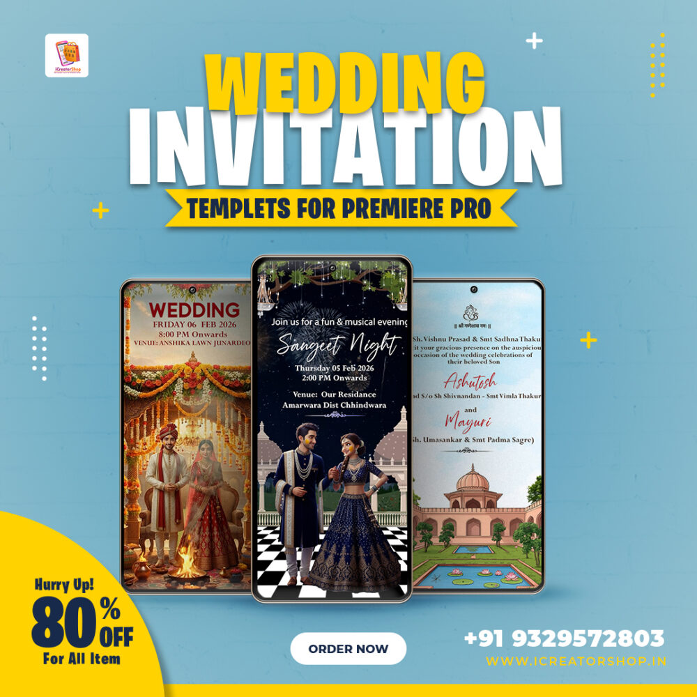 Transform your wedding invitations into a captivating experience with our Hindi Wedding Invitation Projects. Whether you’re planning a grand celebration or an intimate gathering, these templates will help you set the perfect tone for your special day. Get started today and impress your guests with a stunning invitation that speaks from the heart!